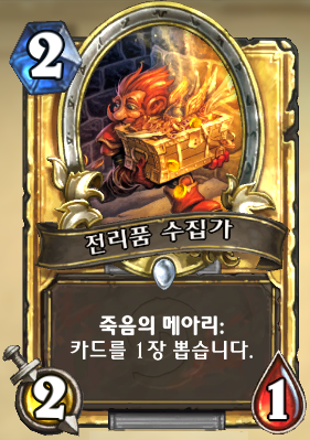 전리품 수집가가 고대신의 의해 타락했다는 식으로 스탯만 뻥튀기시킨 전형적인 우려먹기 카드이다.
