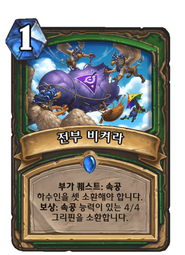 ※전부 비켜라(희귀/사냥꾼/부가 퀘스트): 속공 하수인을 셋 소환해야 합니다. (보상: 속공 능력이 있는 4/4 그리핀을 소환합니다.)