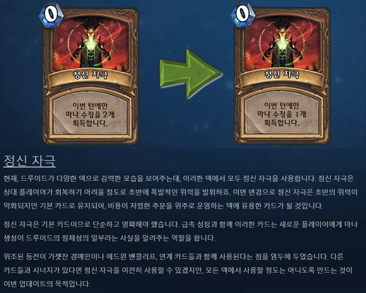 2017년 9월자 패치로 구구절절 말이 많은데 결론은 얻는 마나가 1로 감소한다.