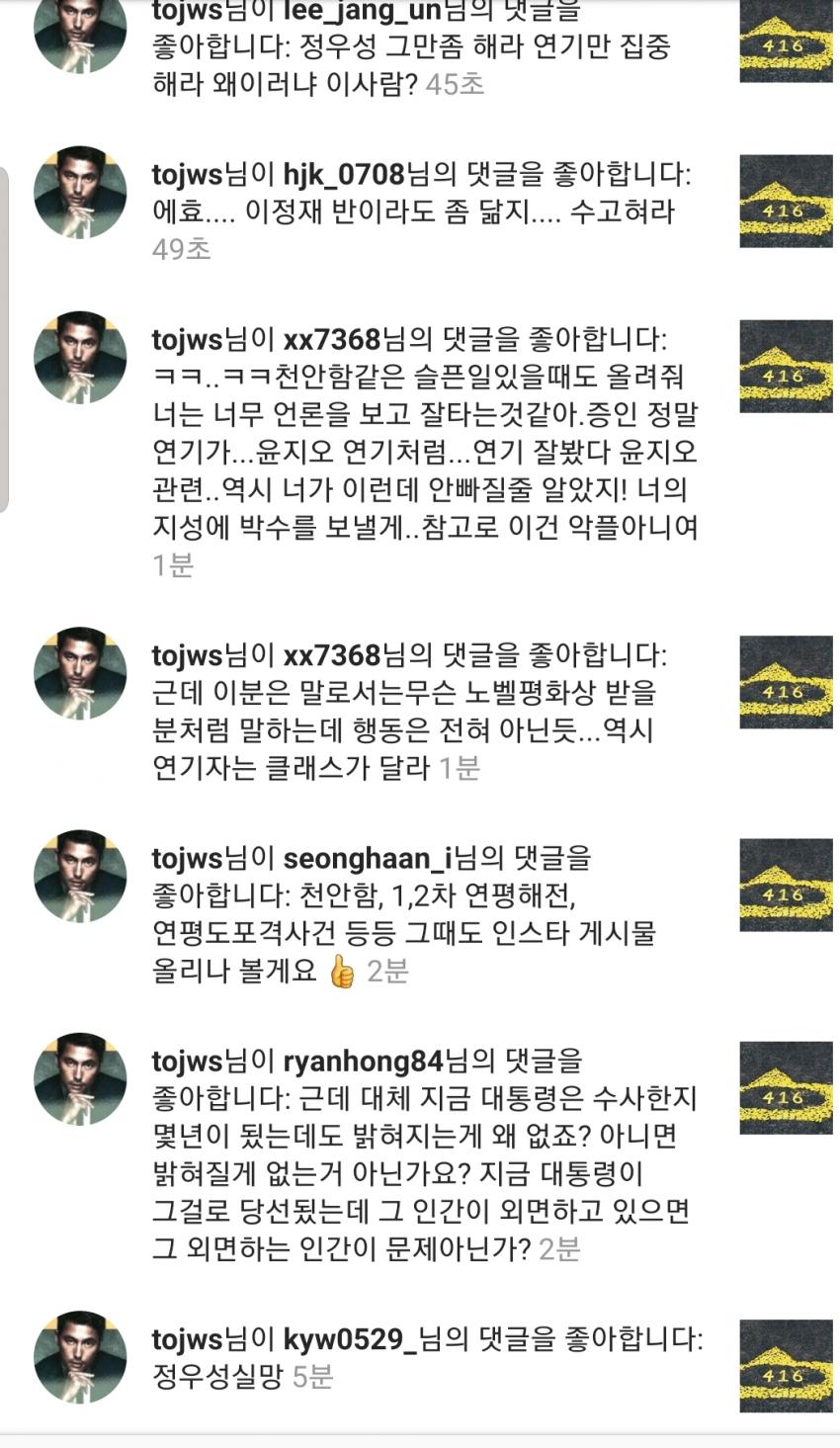 공개를 한 뒤에 빤스런을 하자 커뮤니티에서 이 정우성의 dm을 보면서 또 조롱을 했는데