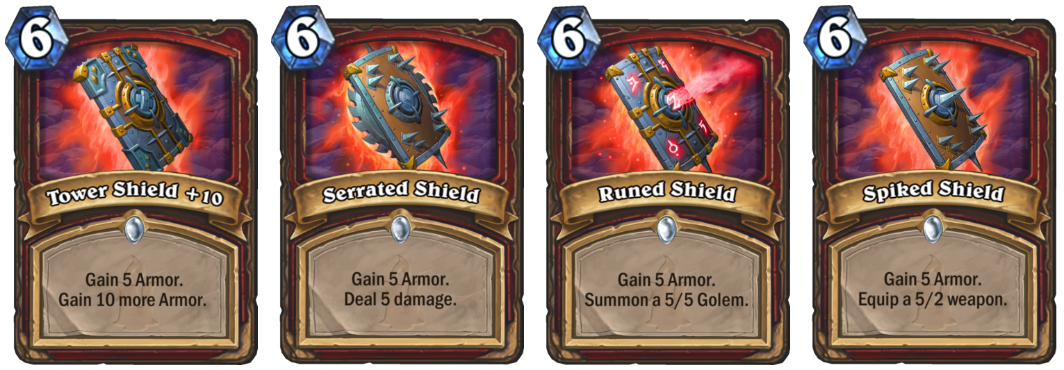 6코스트로 방어도를 +5 얻는다. 그리고 내 손에서 추가 효과를 하나 얻는다.