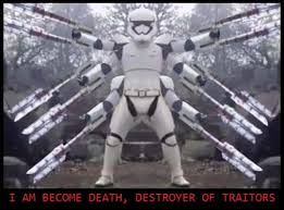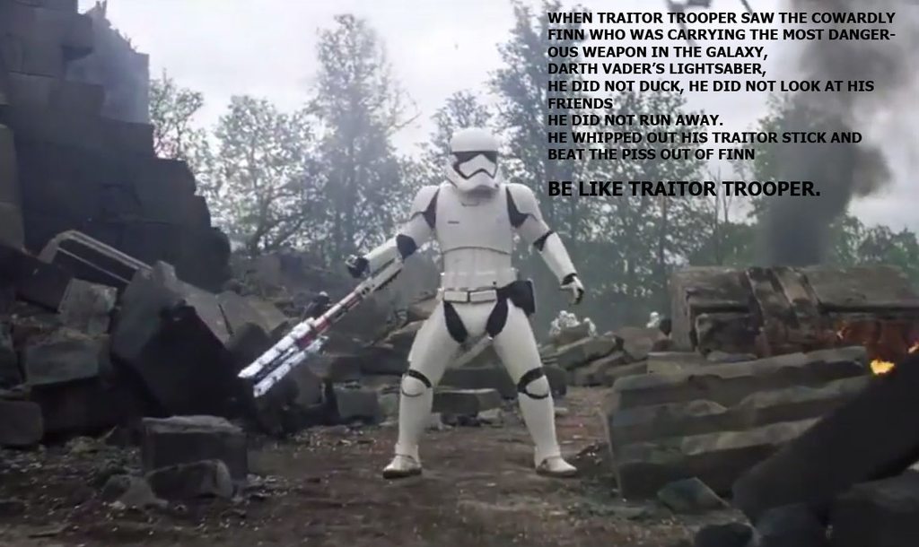 다른 병사들이 위대한 시스 로드 다스 베이더의 광선검을 든 TRAITOR!를 보고 광광 우럭따를 시전할 때 용맹히 방패와 총을 간지나게 내던리고 우주정의봉으로 무쌍을 찍어 TRAITOR!를 죽이기 직전까지 간다. 그러나 인디아나 존스가 쏜 총에 맞고 끔살.
