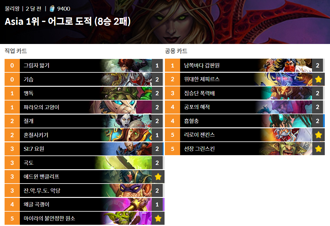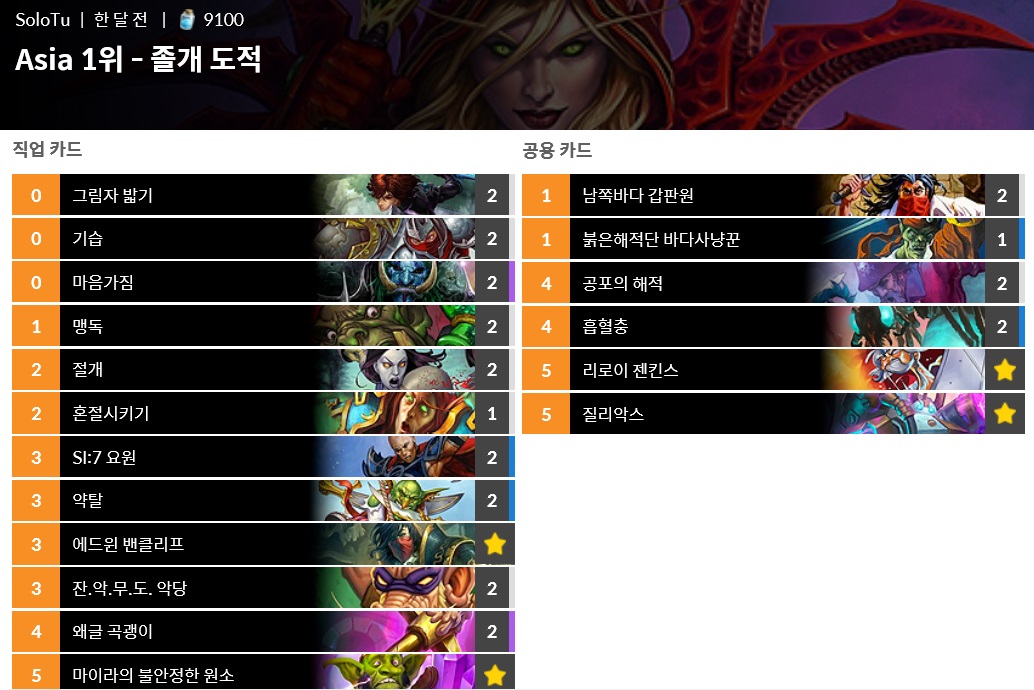 해적세트가 뒤진 후에는 유일한 도적의 티어덱으로 남았다.