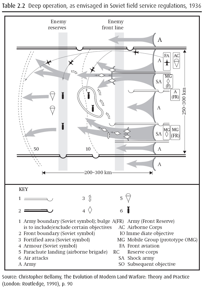 편집풀러나 리델하트가 주장한 마비효과와 비슷하지만 다른 방향성을 가진 기동전 이론이다. 미하일 투하체프스키로 대표되는 소련식 기동전의 요체인 종심돌파이론의 핵심은, 아군이 공략을 할 목표지역에 적이 예비대를 증원하지 못하게 교란하여 전략적 목적을 달성하는 것에 중심을 둔다. 여기서 전략적 목표는 적 지배하의 군사적 주요지역일 수도, 적의 특정 전투 세력일 수도 있다.
