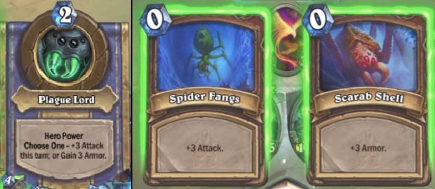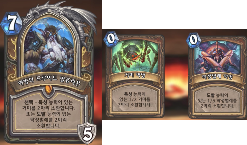 7코스트, 방어도 5, 선택 - 1/2 독성 거미를 2마리 소환합니다. 또는 1/5 도발 딱정벌레를 2마리 소환합니다.
