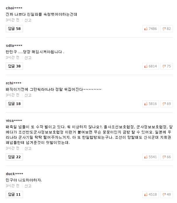 11월 13일자에 올라온 연합뉴스 기사의 반응을 보면... 연합뉴스"한일군사정보협정 내일 가서명…최순실 파문속 속전속결 논란" 네이버 뉴스 링크