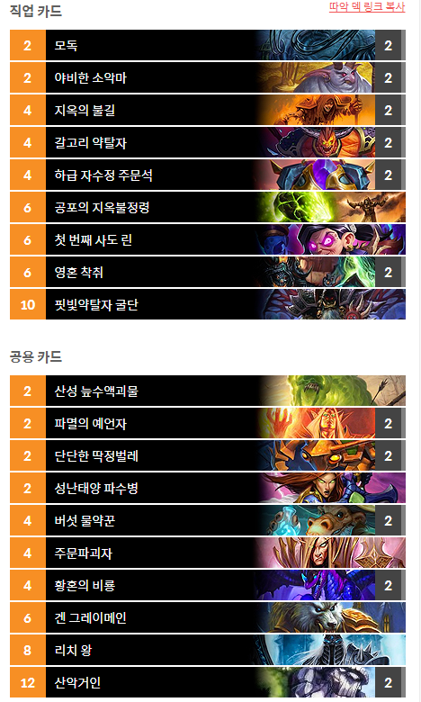 패치 이후 큐브흑마가 치명타를 입자 새로 뜨는 덱이다.