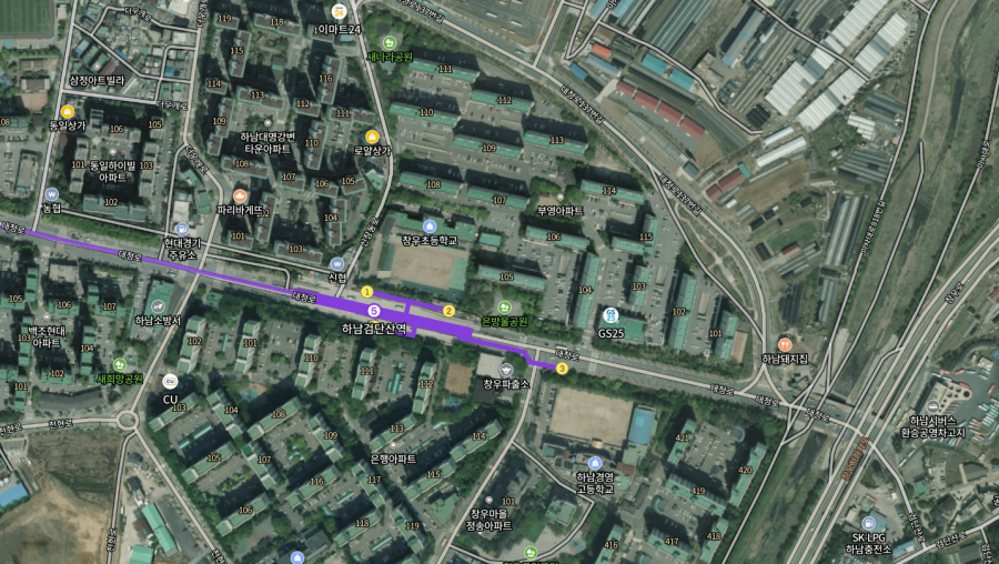 하남선 상일동 · 강일 · 미사 · 하남풍산 · 하남시청 · 하남검단산