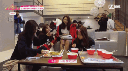IOI에서 엄마를 맡고있다. 유정맘 정채연. 프로듀스에서도 스탠바이에서도 밥 먹는데 반찬 올려준다. 멤버들에게 물을 챙겨주기도 하고, 다리를 가려주기도 한다.