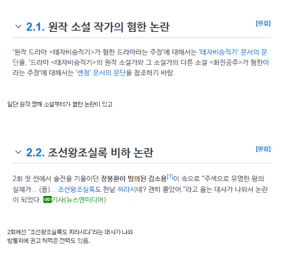 원작자가 혐한이라는 논란이 돌고 있다. 원작인 태자비승직기의 작가가 혐한성향을 가지고 있다는 논란이다. 아니라는 측에서는 오히려 원작에서는 고려를 강성대국처럼 묘사하고 혐한적 요소는 없다, 최근 짱깨들의 김치공정에 휘말려 누명을 쓴 것으로 보인다, ㄹㅇ 이때 신혜선 아니었으면 아무도 안 볼 뻔 했다는 반응이다. 누명 쓴 게 아니라 중뽕이다.