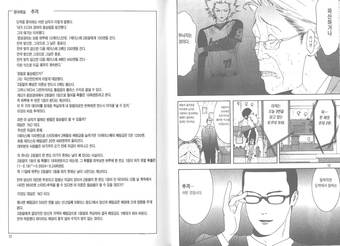 여기에 대한 반론으로 그럼 처음엔 눈곱만큼의 돈을 걸어서 확실하게 이득이 발생하는 소일거리 정도로 쓰면 안되냐고 물을 수 있지만 딜러들은 대가리가 달려있기 때문에 당연히 미니멈이라는 최소배팅금액이 있고, 또 그럴 시간 있으면 일이나 하러 가는게 좋다.
