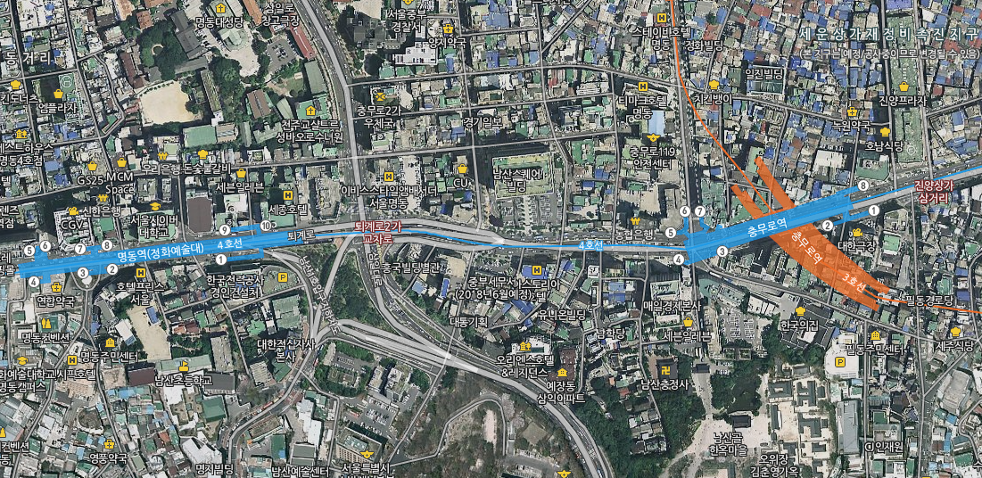 인근에 CJ제일제당 사옥과 신라호텔(사실 동대입구가 더 가까움). 더 케이 호텔 등등이 있으며