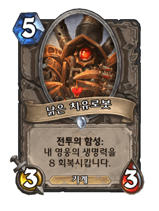 고대놈 공용 일반카드 5코 3/3 기계, 전투의 함성:내 영웅의 생명력을 8 회복시킵니다.