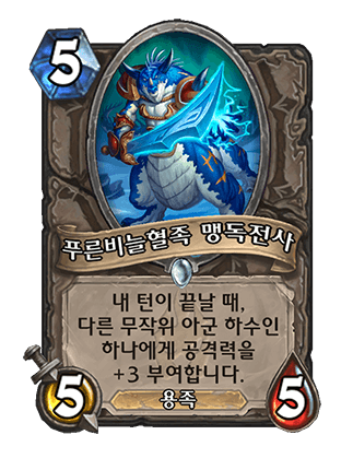 5코 5/5 용족, 내 턴이 끝날때 무작위 아군 하수인에게 공격력을 +3 부여해준다.