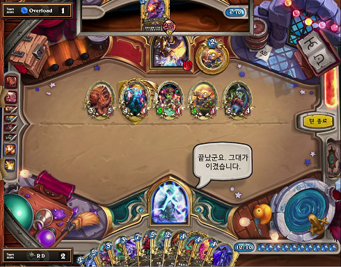 도대체 어느누가 3/3을 여기에 쳐박고있습니까 타림에다가? 여러분 상대방도 띵킹이라는걸 합니다. 가끔 어떤분들은 하스스톤이 ai랑 하는 줄 착각하는 분들이 있어요. 여러분 상대방도 휴먼이예요. 누가 여기다가 정직하게 3/3을 박아줍니까. 찌꺼기가 남는다는게 최대의 단점이예요.