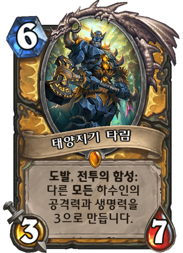 타림이 저평가받은 원인중 하나가 당시에 씹랄스톤이라서 그런 탓도 있다. 지금 짝수리 상대해봤으면 알겠지만 씹랄상대로 타림은 토템 3/3만드는 트롤새끼일 뿐이다