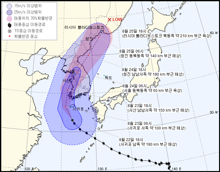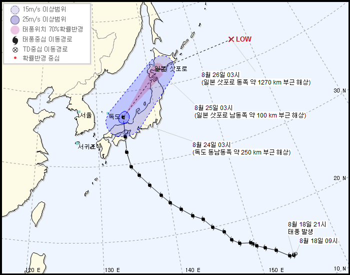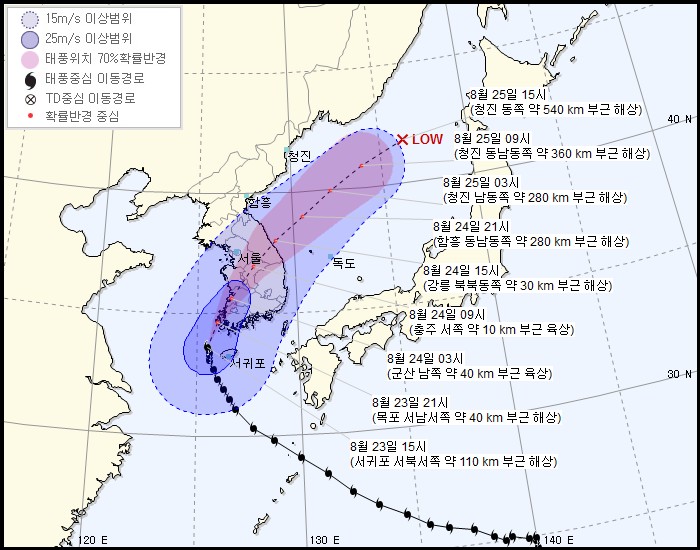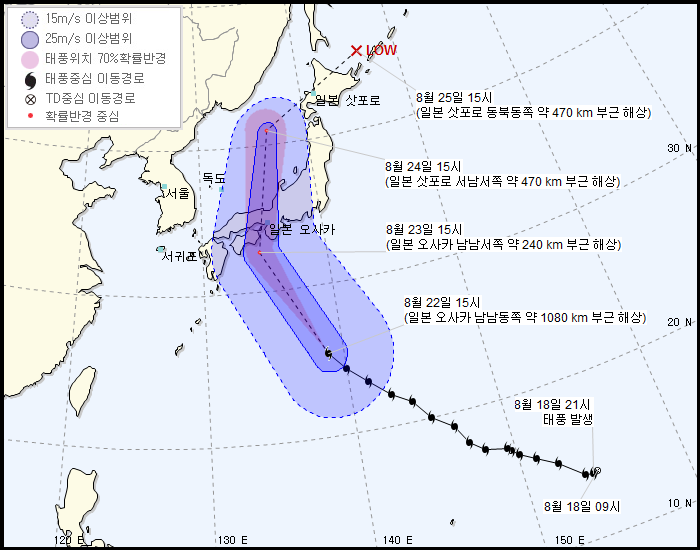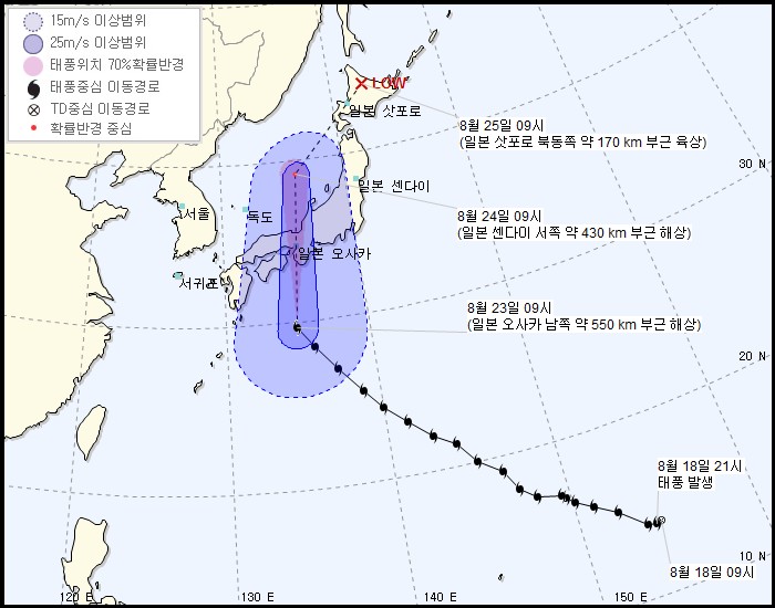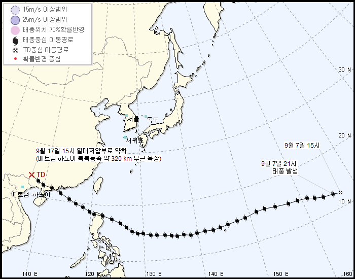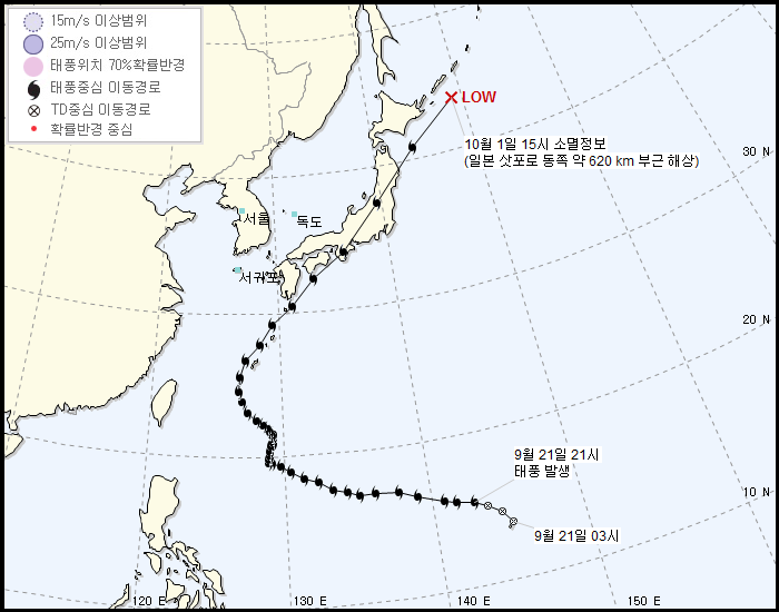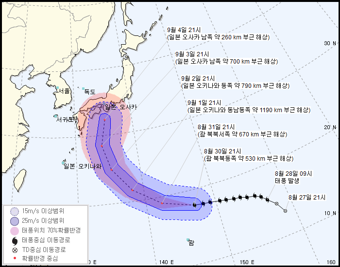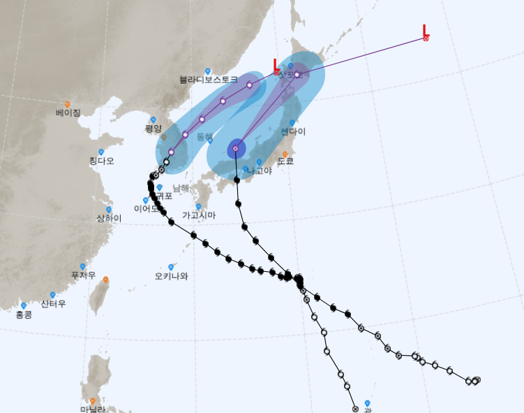 예상 경로는 일본쪽으로 갈 예정이다. 한반도의 경우 이젠 추워서 못 온다하더라.