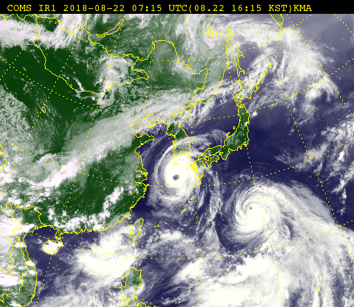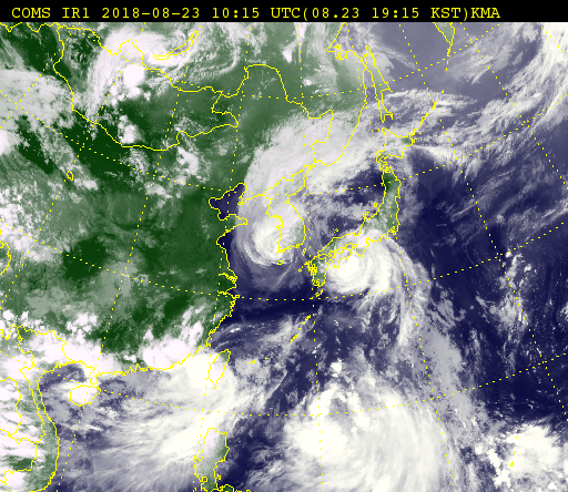 27일 5시 결국 열대 저기압(TD)으로 소멸했다. 한반도 남부 일부와 서쪽은 폭염이 더 심해질 예정이라고 한다. 일본의 열돔은 깨졌는데...
