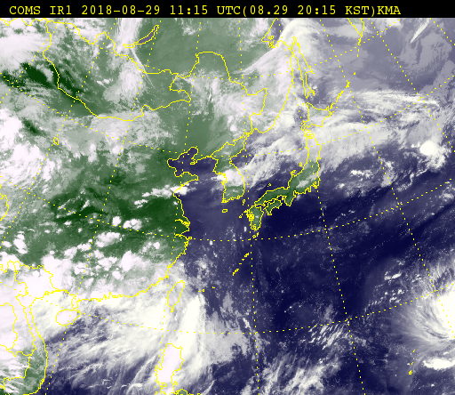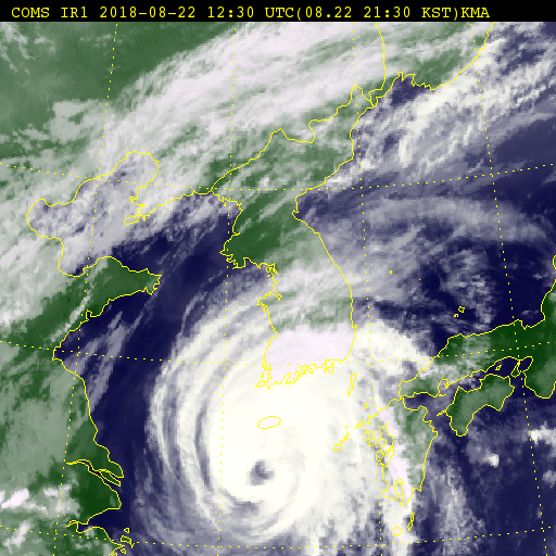 출생지는 대만이라카더라. 예상대로 초속 20 m/s 대 풍속을 유지하며 비실비실하게 가고 있다. 보퍼트 풍력 계급으로 보면 8 밖에 안된다.. 결국 오후 3시에 사망했다.