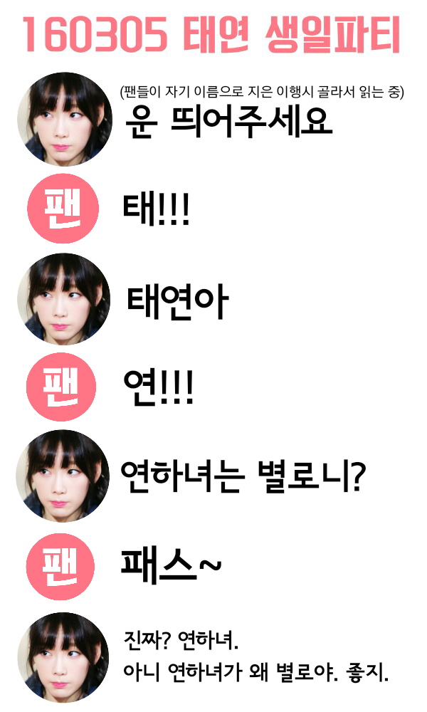 만약 당신이 이 글의 작성자(이)거나 태연을(를) 좋아하는 사람일 경우, 태연을(를) 찬양하십시오.