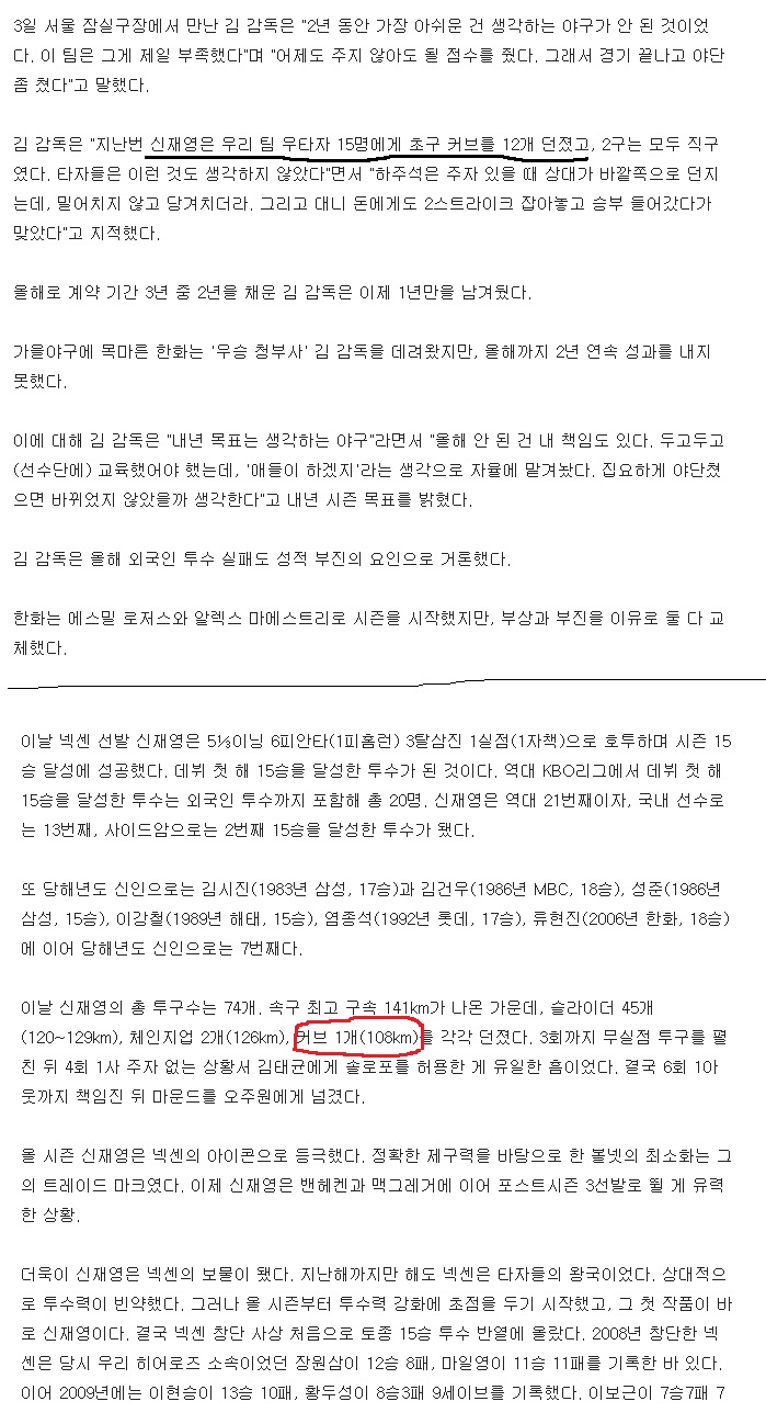 나이 40넘은 투수가 연투를 못하는 건 근성과 정신력이 부족해서이며, 104이닝 1900구 넘게 던진 투수가 커브를 안던지고 직구만 던지는 것은 노오오오력이 부족해서이다.