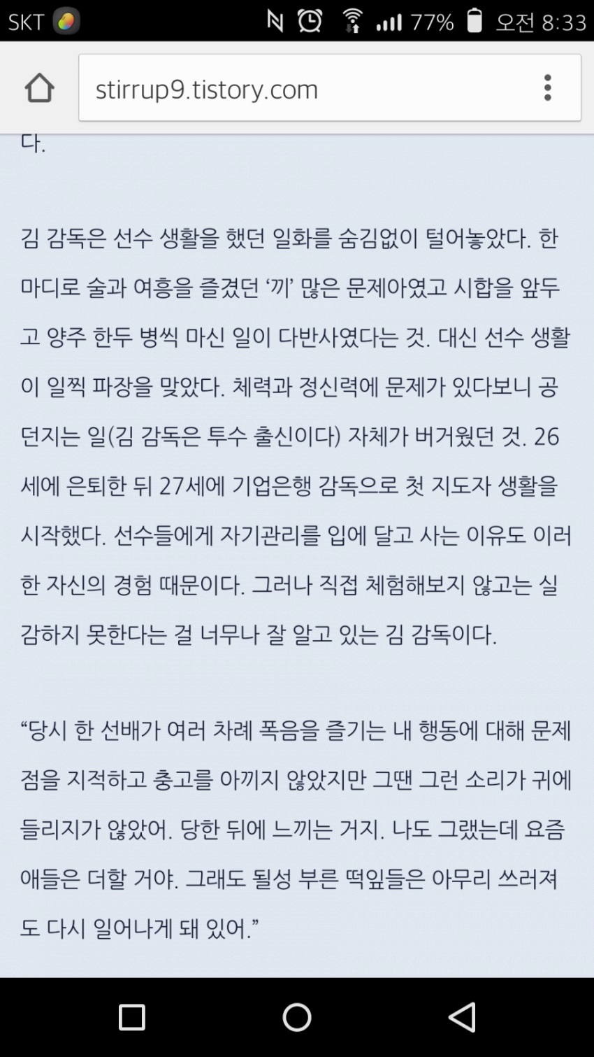 8. 봄겨울에 추운곳가서 야수들 투수들 혹사훈련시킨다. ( 싹수 보이는 애들은 군대가 있으니 괜찮) 살려조들에겐 미안하지만 다른 애들 굴려지는 맛에 지켜봐주자.