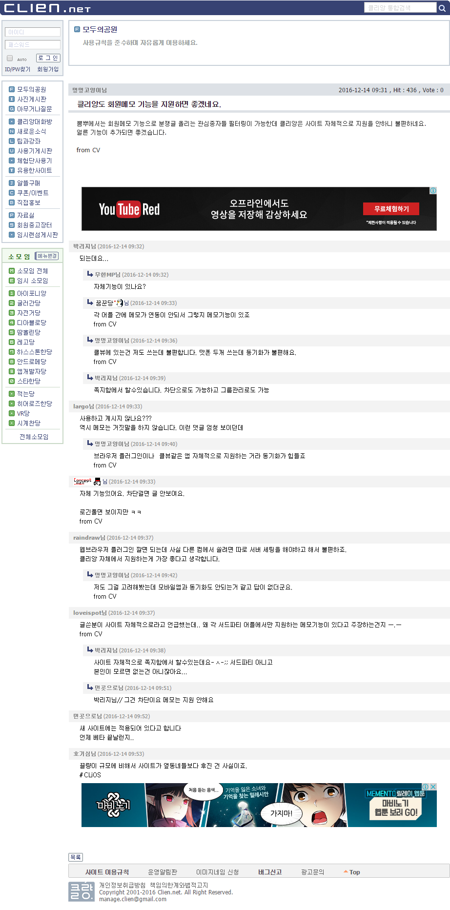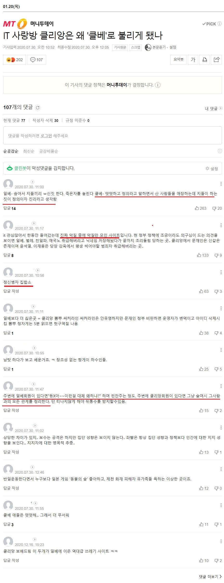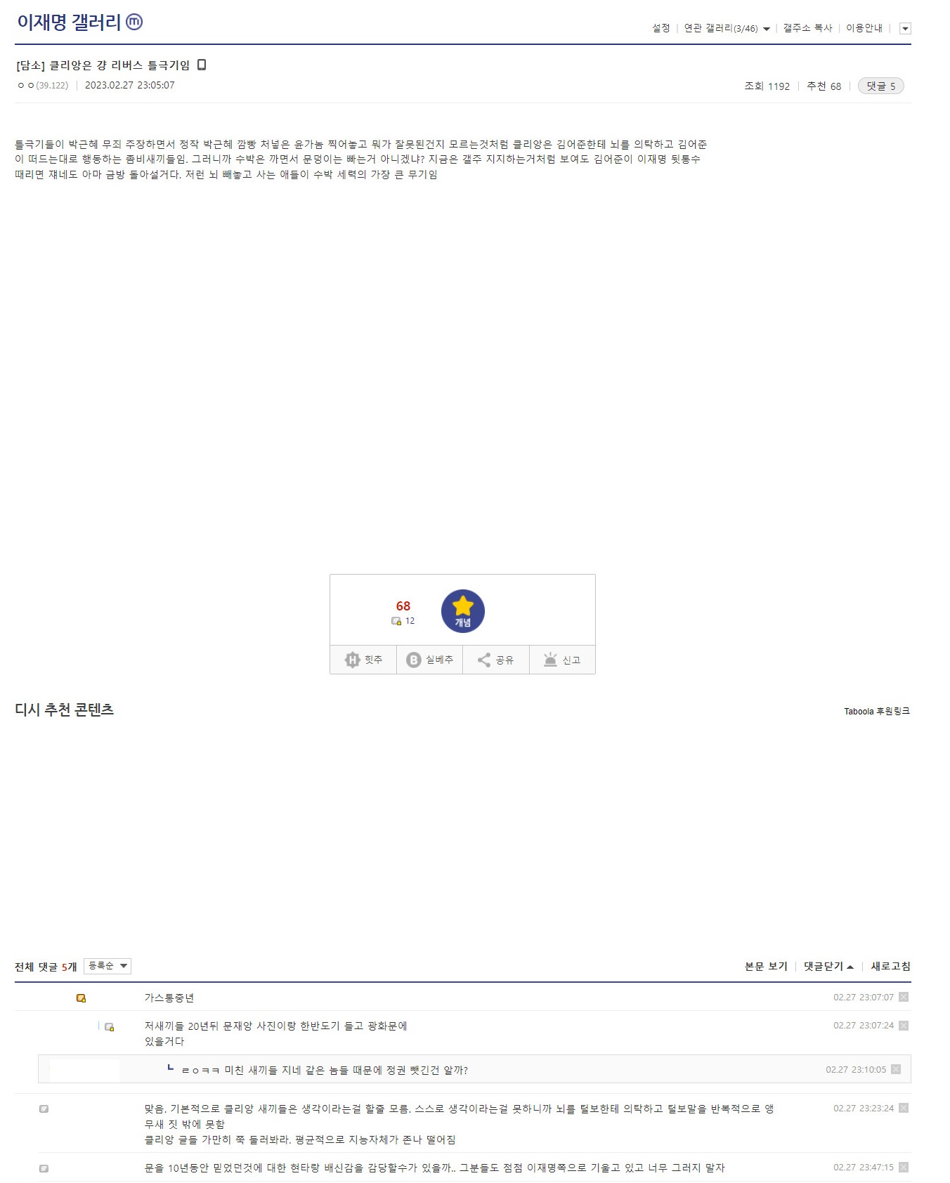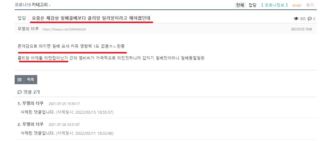 - ↑ 클리앙 개새끼들이 댓글 크롤링 막아놔서 캡처해놨다.