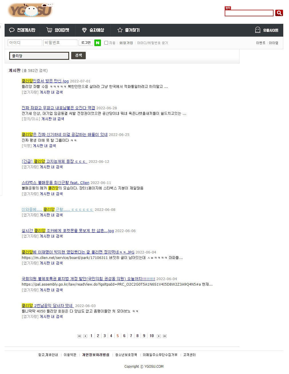 솔직히 모든 소모임 게시판들 다 싸잡아서 비판하긴 그렇긴 한데 어차피 클리앙의 대부분은 새소게하고 모공이고 그 둘은 진짜 씹노답이다. 김어준같은 새끼 이게 말이야 똥이야 싶은 좆같은 소리 하는거 빨면서 거기 조금이라도 의문 제기하면 일베충 몰아가는 노답새끼들
