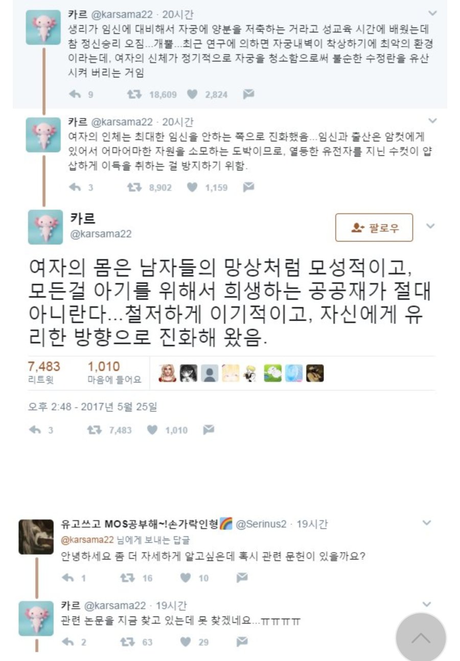 페미논리: 정자은행=아빠 없이 아이 낳고 싶은 페미 / 낙태권=아이는 기생충이다 / 독박육아혐오=여자는 육아를 책임지지 않아도 되고 남자가 다해라 -> 내 답: 애를 낳을 건지 안 낳을 건지 둘 중 하나만 해라. 논리가 모순적이잖아.