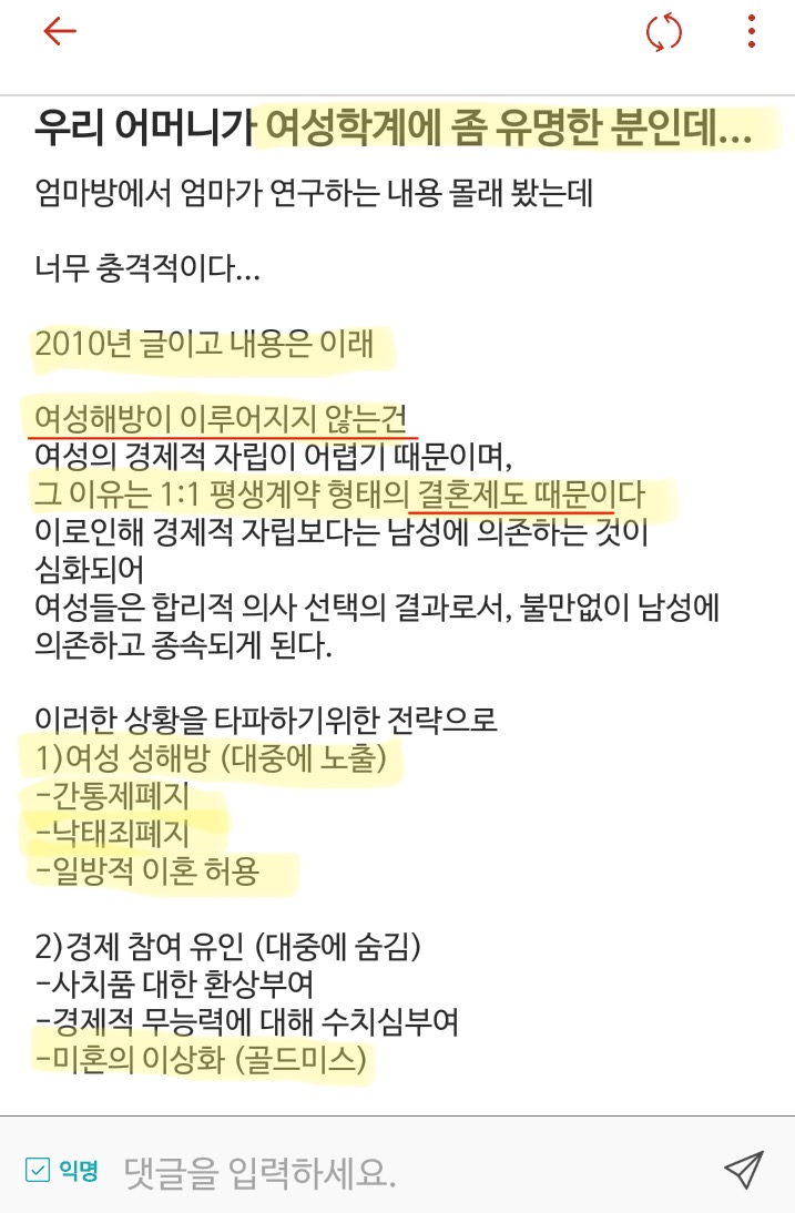 한국의 주류 페미니즘이다.