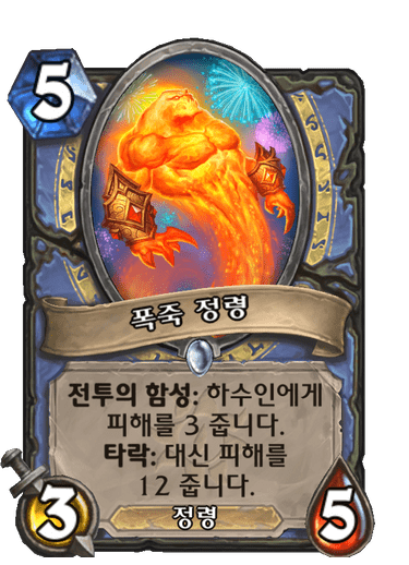 5코 3/5 정령, 전투의 함성: 하수인에게 피해를 3 줍니다. 타락: 대신 피해를 12 줍니다.