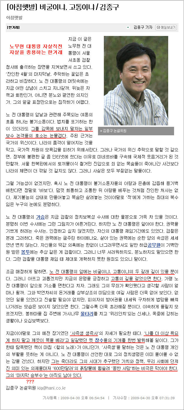 ㄴ 그게 아니라 한겨레는 원래 친노 전문 담당일진이었다. 노무현 뒈짖하기 전에 글들을 보면 한겨레 쪽이 조중동보다 살벌함.