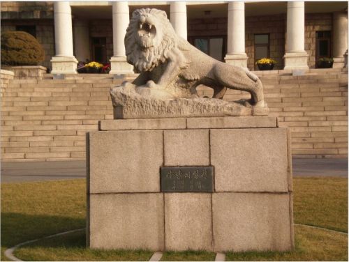 본관 앞에는 한양대의 상징 중 하나인 커다란 사자상이 있는데, 이 사자상의 이빨을 갈아 마시면 사법시험에 합격한다는 전설이 있었다. 사자상을 자세히 보면 다른 부분에 비해 이빨만 유독 하얀데, 바로 이런 사정이 있었던 것이다. 결국 이빨부분은 교체가 용이하도록 돌이 아닌 폴리머 재질로 교체했다고 한다. 로스쿨이 도입된 지금까지도 사자상의 이빨이 실종되는 일은 심심찮게 벌어진다.