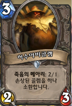 | 와아우! 황금 희귀카아드! 이 문서에서는 블리자드의 두 번째 밥줄인 돌망겜에 대해 다루고 있습니다. 패치 때마다 어-썸한 사기카드들을 잔뜩 만들어내다가 결국 명을 달리 하고 말았던 벤 브로드에게 감탄과 경의를 표하십시오. |