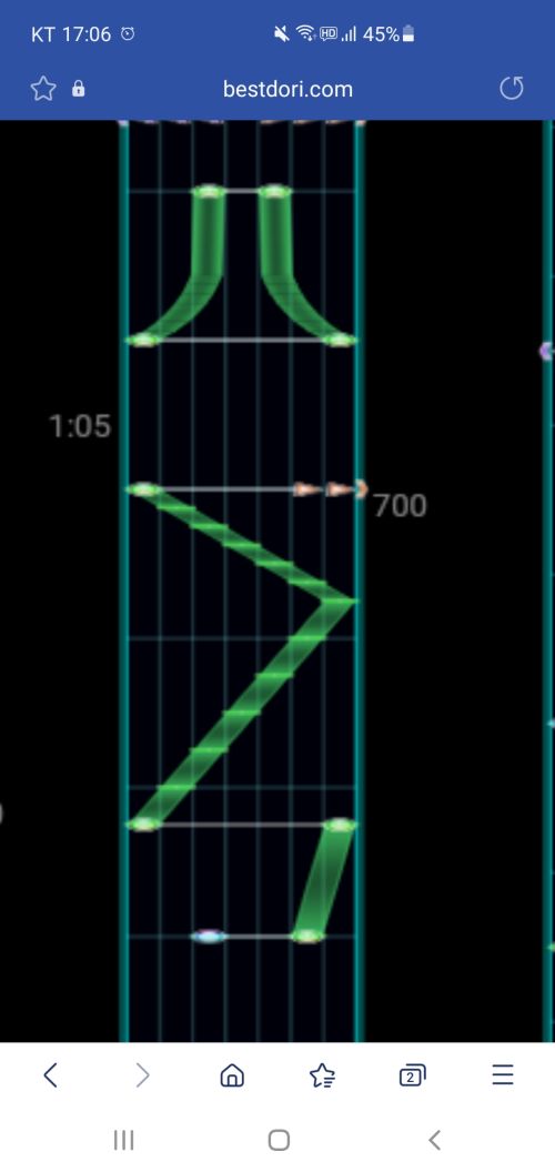 스페셜 채보일 경우 다른 파트를 숙지했더라도 이 패턴의 엇박 하나가 주변 리듬을 깨기 때문에 어렵다. 정작 익스 채보는 저 구간이 정박이라서 빠르게 누르기 쉽다.