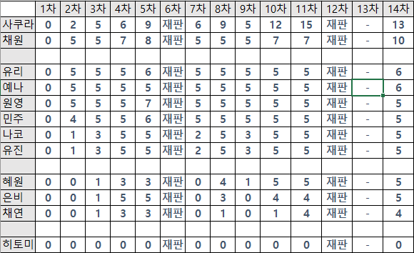 | 권은비 | 미야와키 사쿠라 | 강혜원 | 최예나 | 이채연 | 김채원 | 김민주 | 야부키 나코 | 혼다 히토미 | 조유리 | 안유진 | 장원영 |