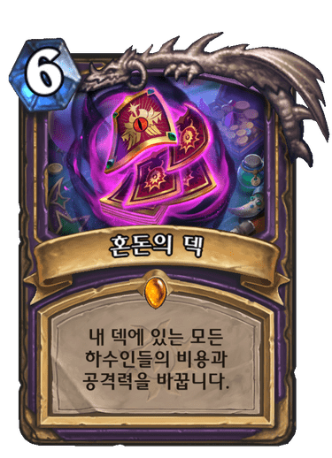 6코, 내 덱에 있는 모든 하수인들의 비용과 공격력을 바꿉니다.
