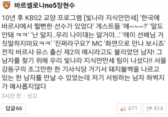 아시안게임에서 몇골 넣었다고 후빨러가 상당히 늘었다