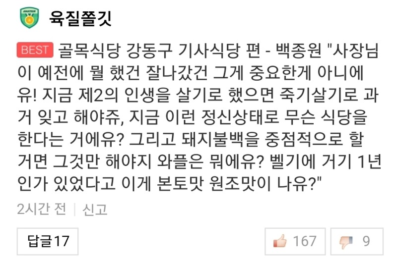 ㄴ국내 최고의 돼지불백 장인이다.