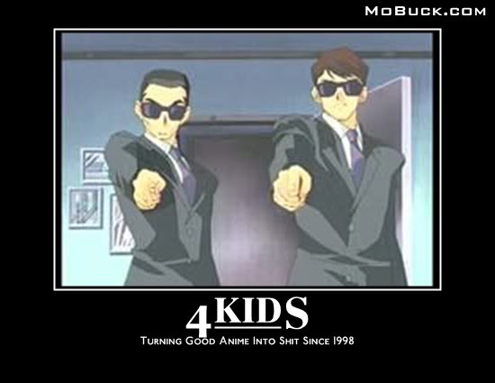원피스 4Kids판은 그야말로 전설 그 자체. 원피스가 미국에서 못 자리 잡는데 큰 기여를 했다. 포켓몬스터 뮤츠의 역습도 말아먹은 적이 있다. 유희왕은 아래 문단에서 후술한다.