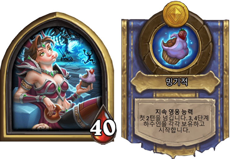 밍기적: 지속 영능, 첫 2턴을 넘깁니다. 3단계 하수인 둘을 보유하고 시작합니다.