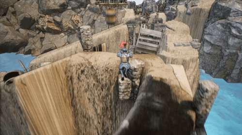 또한 맨몸으로 점프해서 건너기 어려울정도로 멀리있는 구간인데 다행히 옆쪽으로 벽이 있다면 그쪽에 방패를 던져 발판을 만들어서 건널수있다.