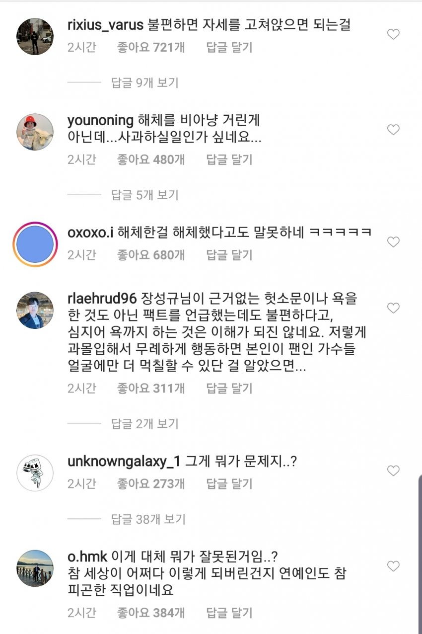 결국 장성규의 인스타그램은 비공개 처리되었다.