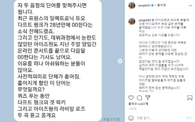 장성규, 아이즈원 '해체' 퀴즈 논란 사과…"배려 없었다"[2]