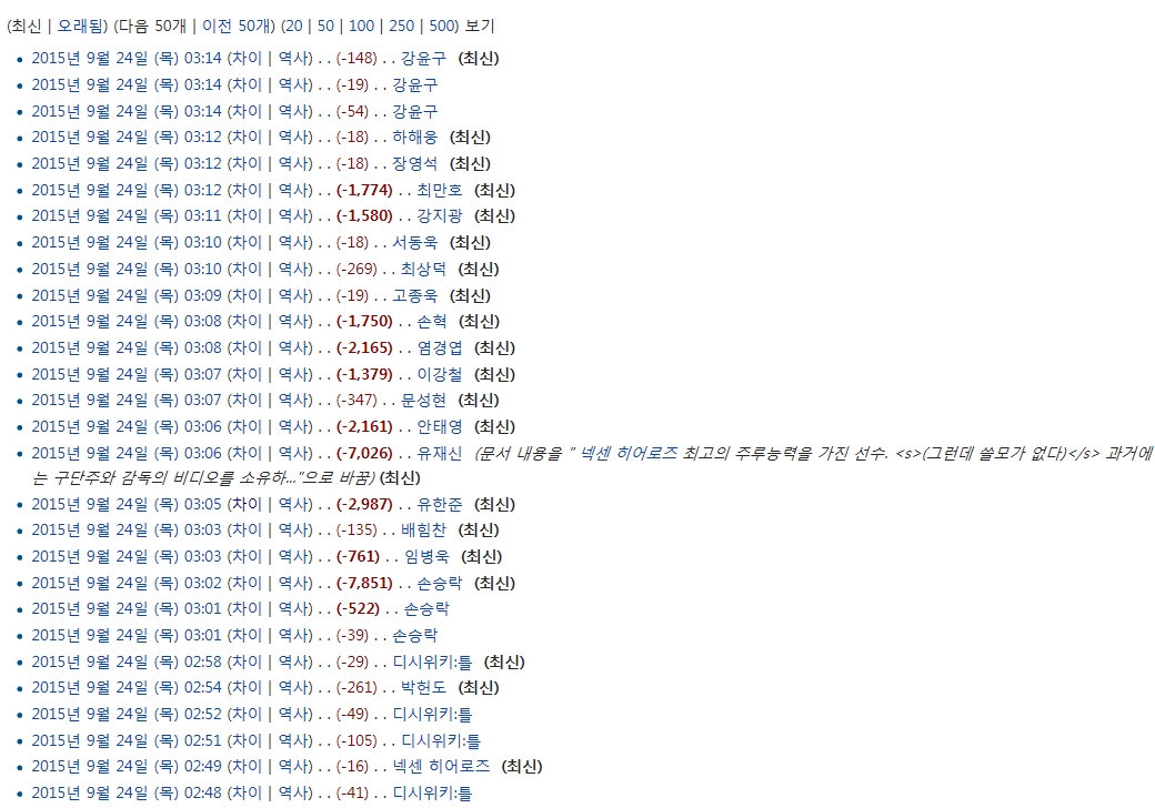 http://wiki.dcinside.com/index.php?title=%EC%95%84%EC%9D%B4%EC%9C%A0&action=history (아이유 문서 역사 링크)
