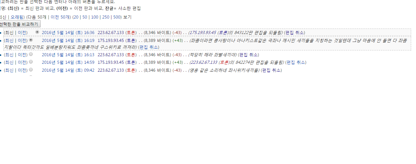 해당 욕설 문서수정을 수정해놨으나, 곧바로 또다른 욕설을 작성해놓은것 역시 확인되었습니다.