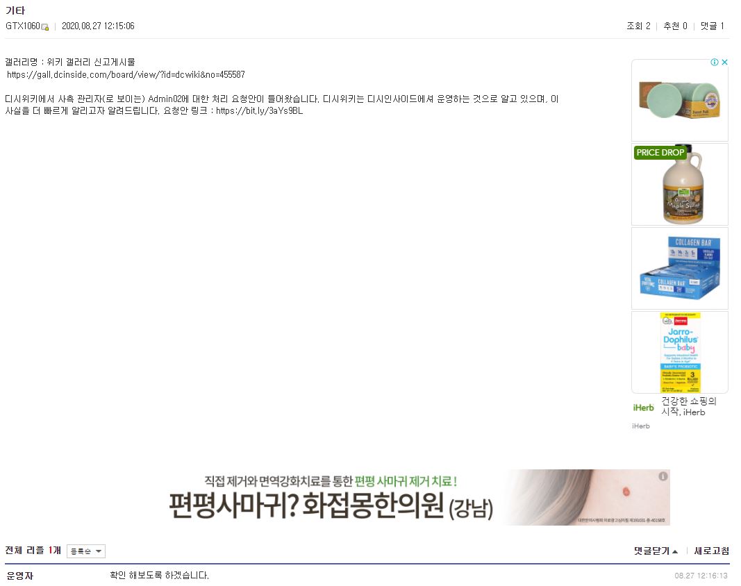 ㄴ동의하지만 내 생각에는 디시 신고 갤러리에서도 올리는게 나을듯. --Aventador LP700-4 (Talk Me) 2020년 8월 26일 (수) 16:10 (KST)