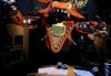 앞에는 피라미드의 윗부분을 잘라내고 각 면마다 원통형의 창문이 박힌 듯한 구조물이 있다.