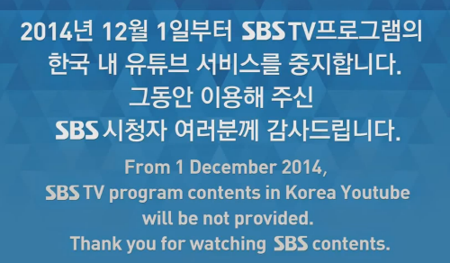 원래 몇년 전 부터인가 각 방송사들은 유튜브 계정을 만들어 놓아서 드라마, 예능 등 여러 프로그램의 풀 영상을 업로드하거나 풀 영상을 잘라서 여러 개로 만들어낸 영상을 한 재생목록으로 만들어서 사실상 풀 영상과 다름없게 했었는데 그 서비스를 2014년 12월부터 막아버린 거다.