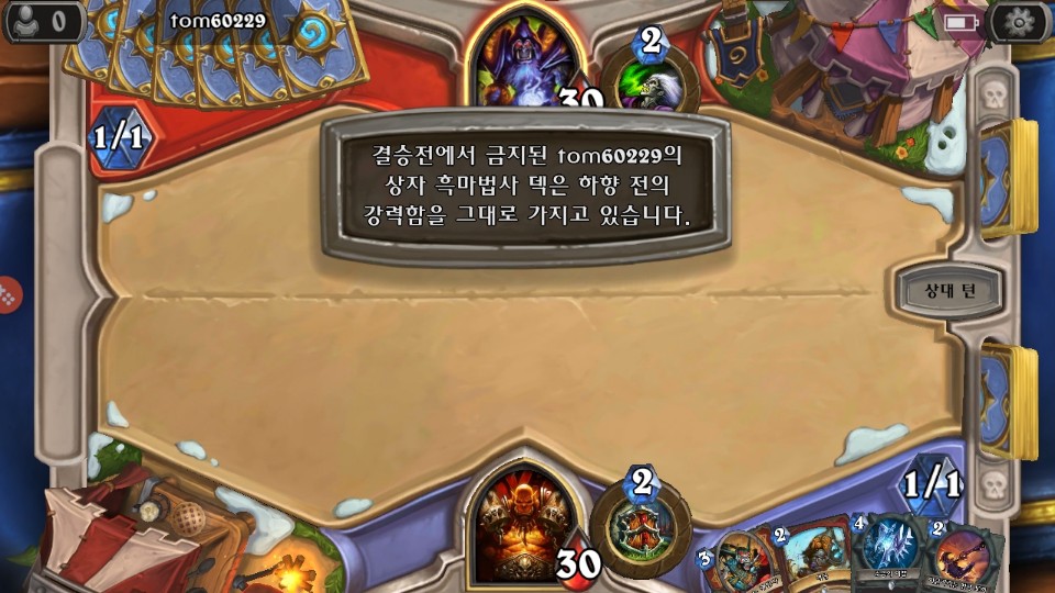 손패를 다 털어서 초반에 10/10 밴클리프를 내서 게임을 터뜨렸다.
